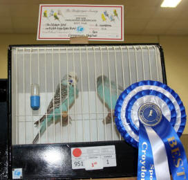 Wayne Greening won the best colour budgerigar pair with a spangle skyblue while Paul Chandler was second with a pair of opaline cinnamon light green. There were no teams in the colour budgerigar section.