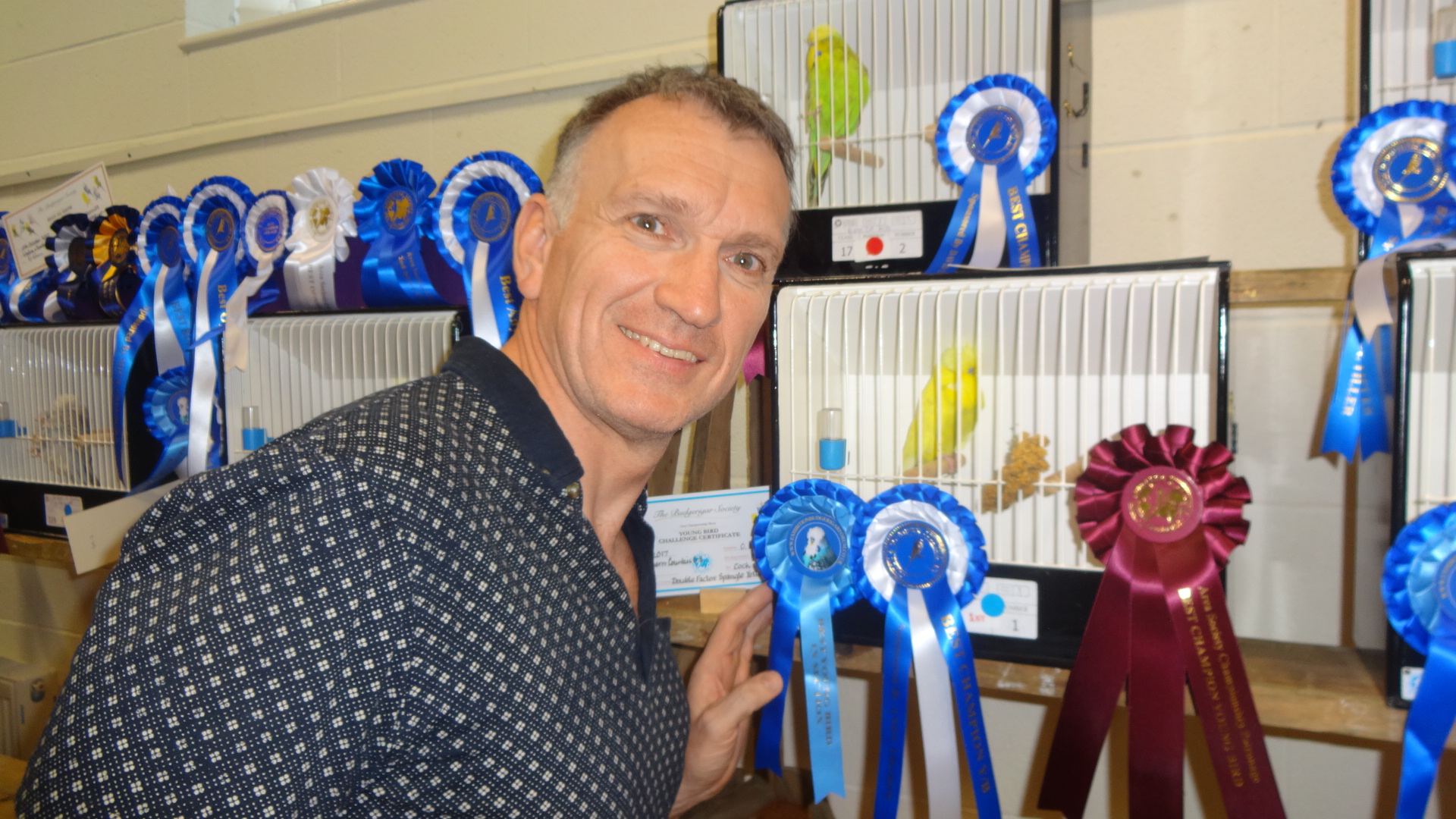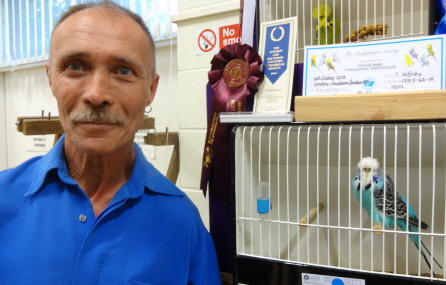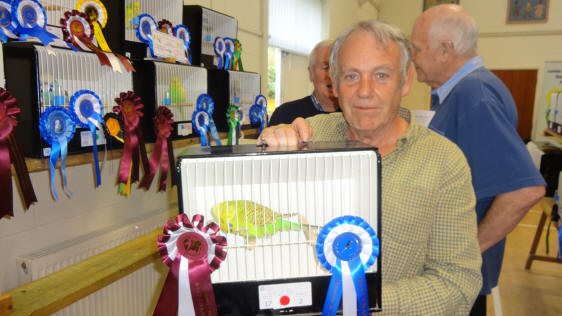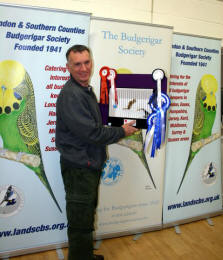 Best of colour young bird awards: G. Carter, light green, clearbody; G & J Al-Nasser, dark factor green, albino, rare variety, any other colour; R. Marston, skyblue; R. Carr, dark factor blue, opaline green, lutino; J. Lawrie, grey green, grey, double factor spangle; I. Standley, opaline blue, spangle green; S. Bailey, cinnamon green; R. Nicholls, cinnamon blue, yellowface; N. Masham, opaline cinnamon, dominant pied; T & Y Tuxford, yellow-wing; M & P Baker, crest, S. Cox, spangle blue; N & N Johnson, recessive pied; A. Thorogood, colour budgerigar.
