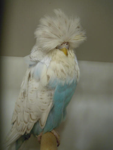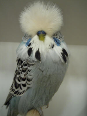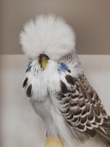 There was a fantastic entry of 47 colour budgerigars entered by 13 exhibitors competing for the 2 challenge certificates in the any age and young bird sections. This demonstrated the popularity and slow progress in opinion changing regarding this breed around the country. Anita Thorogood won the any age certificate with a cobalt cock while Ghalib & Janice Al-Nasser were second best with a spangle cobalt cock. Anita also won the young bird certificate with a half circular crest cinnamon cobalt hen which was also best colour budgerigar overall and she occupied second best with a cinnamon cobalt hen.