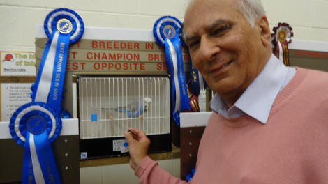 It was the skyblue variety that came up trumps on this occasion in comparison to the greys at last year’s show. The judges; B.S. Chairman Maurice Roberts, Mark Gulley, Brian Reese and our own President Ian Standley selected Jim Lawrie’s skyblue cock as the best any age in show and then selected another skyblue cock bred by Steve Cox as the best young bird and best in show. The Terheege Partnership won the best any age opposite sex award with a cinnamon grey green hen. The final award that the judges selected was the best young bird opposite sex in show and best overall opposite sex in show which went to an albino hen bred by Ghalib & Janice Al-Nasser.