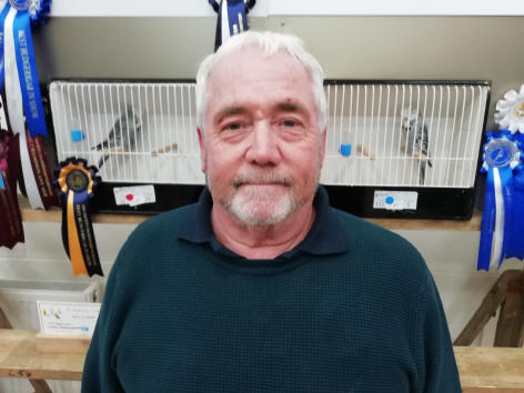 Heading the intermediate any age section of 7 exhibitors was Nick Masham’s grey cock and he was second with a dominant pied cock. This was followed by Ray Nicholls’ cinnamon green cock in third place. Paul Harden won the young bird section with a cinnamon blue cock while Ray Nicholls occupied the next two places with a dark green cock and spangle blue hen.