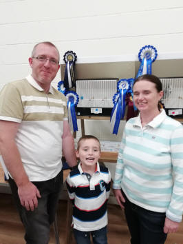 It was pleasing to see 2 juniors competing and congratulations to Zoe & Harry Johnson coming all the way from Dorset to dominate this section. They won the top 3 awards in the any age section with a cinnamon dark green cock followed by their grey cock and grey green cock. They also won the young bird awards with a grey cock followed by a grey hen in second position.