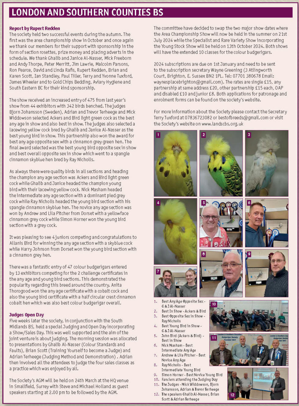 Sunday 12th October 2025 (judges invited are Dave Guppy,