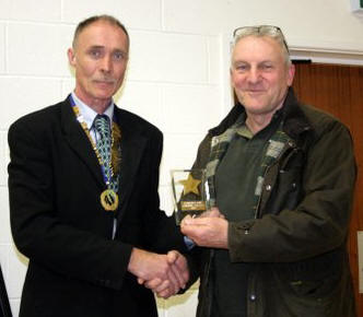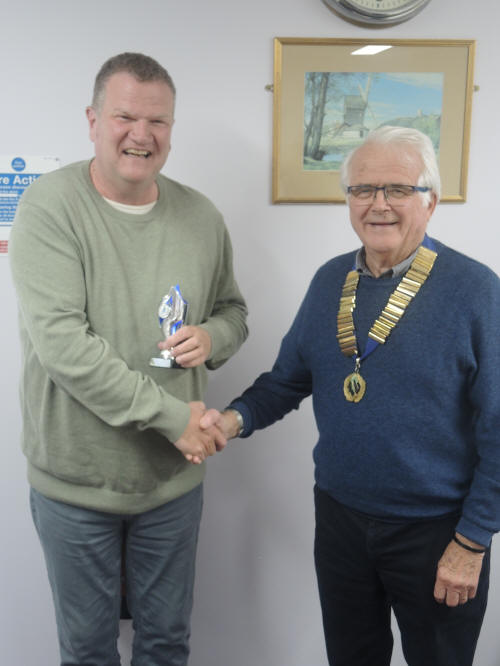 Tony Jeffrey awarding the President’s Trophy to James Folly,